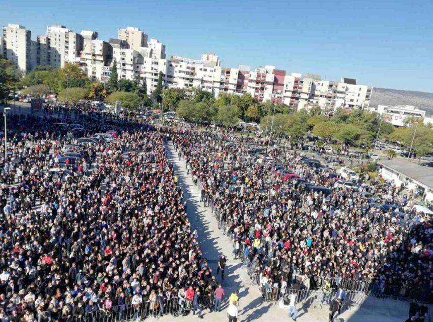 Prekršene su mjere u i ispred Hrama Hristovog Vaskrsenja u Podgorici za vrijeme liturgije i opijela koje povodom smrti Amfilohija služi patrijarh srpski Irinej.
