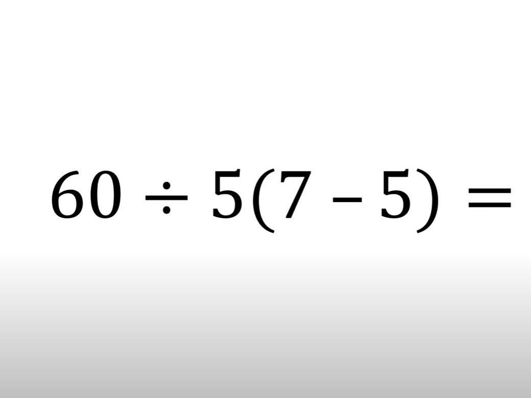 Ukoliko ovako postavljena zadatak unesete u kalkulator, on će prvo riješiti dijeljenje, a zatim ono što se nalazi u zagradi i prikazaće rješenje 24. Ako ga rješavate prema onome što ste učili u školi, tj. prema redoslijedu matematičkih operacija – množenje, dijeljenje, sabiranje, oduzimanje – redoslijed će izgledati ovako: 60÷5(7–5)=60÷5(2)=60÷10=6.