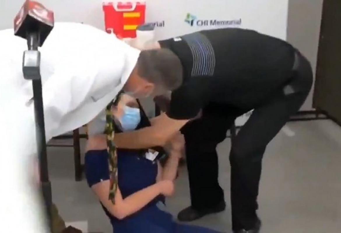 Tifani Dover (Tiffany) govorila je za medije o prvoj vakcinaciji zdravstvenih radnika na prvoj liniji borbe protiv Covida-19, kada se srušila, prenosi „Washington Times“. Snimak se brzo proširio društvenim mrežama.