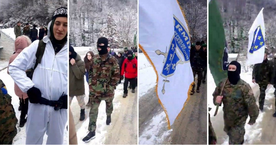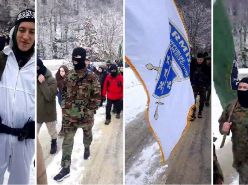 Veliki broj mladih vidi se na snimcima na kojima marširaju osobe u uniformama sa ratnim zastavama Armije RBiH uzvikujući "Alahu ekber". Neki od učesnika imaju i maske na licima.