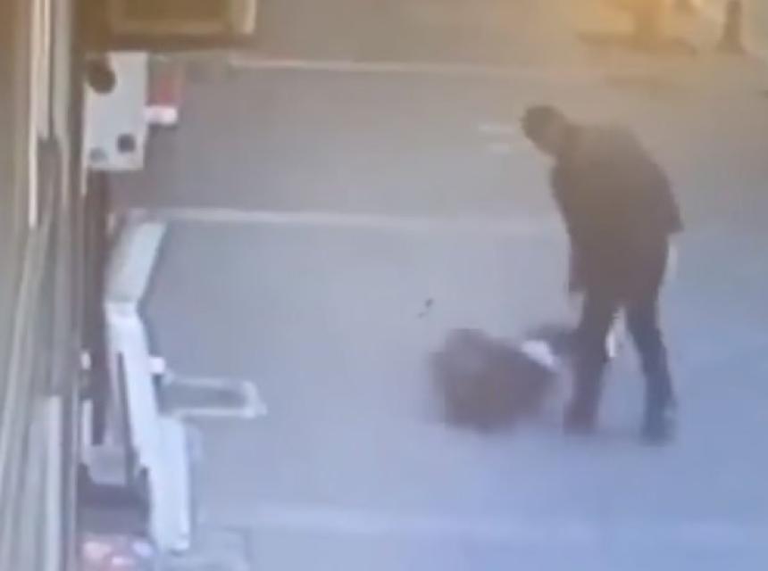 Cijeli incident snimila je bezbjednosna kamera. Kako se vidi na početku snimka, napadač je prišao ženi za koju se vjeruje da je njegova bivša supruga, i počeo da je udara na sred ulice. Udarao ju je u glavu sa predmetom koji najviše podsjeća na umotane novine i oborio je na zemlju, piše Mirror.
