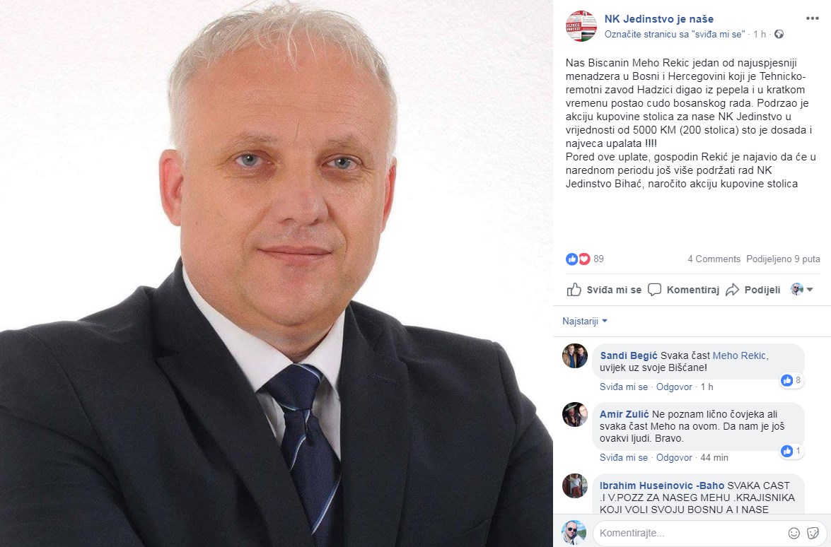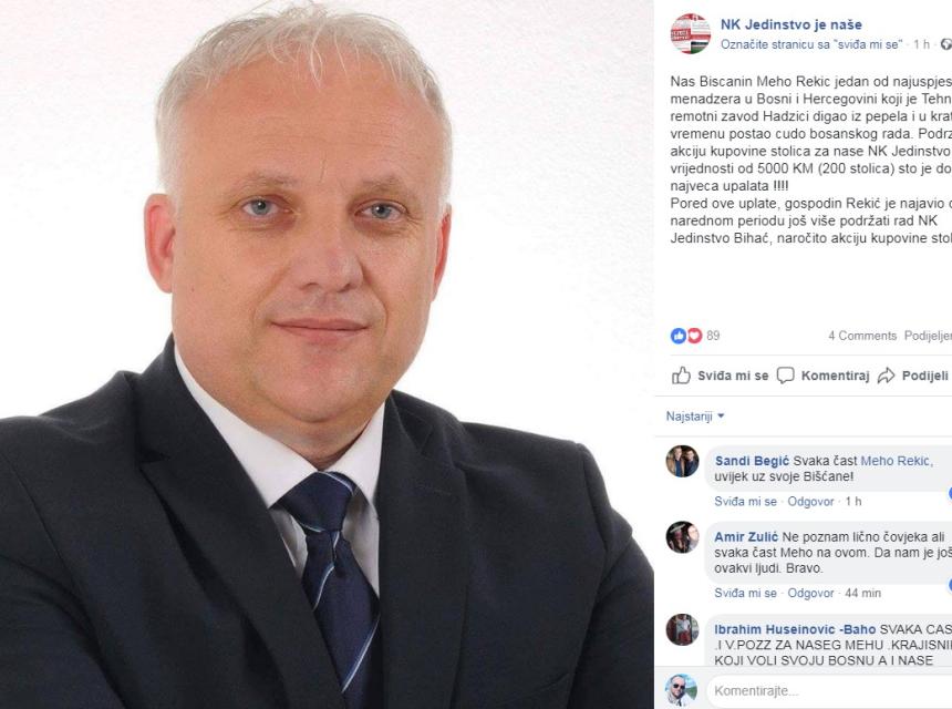 Pored ove uplate, gospodin Rekić je najavio da će u narednom periodu još više podržati rad NK Jedinstvo Bihać, naročito akciju kupovine stolica- objavili su na zvaničnom fan pejdžu kluba