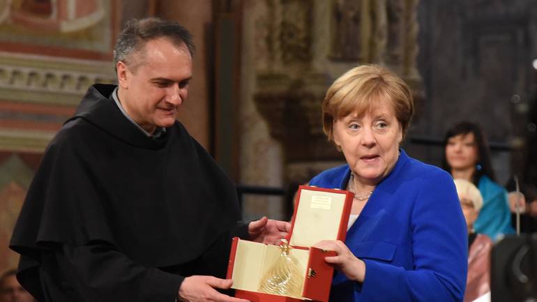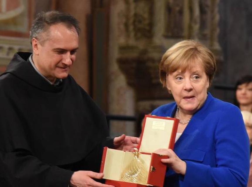 Merkel je u prigodnom govoru u bazilici, čiji su zidovi ukrašeni freskama majstora iz 13. stoljeća Giotta, naglasila da, ukoliko Europa želi zaštititi mir i sigurnost, mora ojačati svoje vrijednosti.