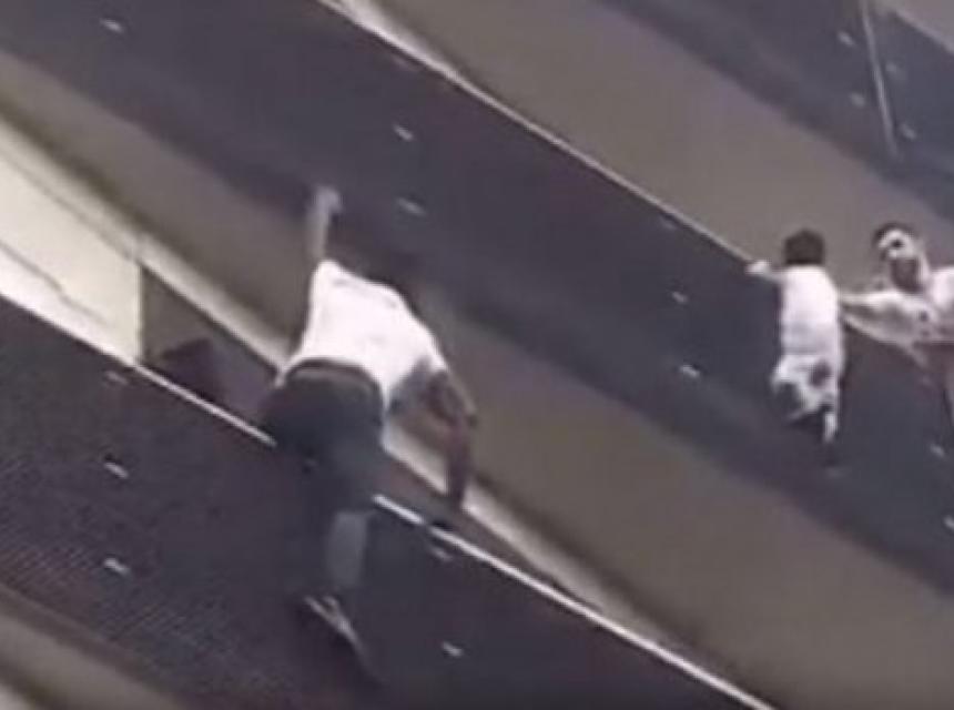 Na amaterskoj snimci vidi se Mamoudou Gassama kako se brzo uz fasadu četverokatne zgrade da bi stigao do djeteta koje je visilo s balkona i odveo na na sigurno, praćen navijanjem okupljenih promatrača.