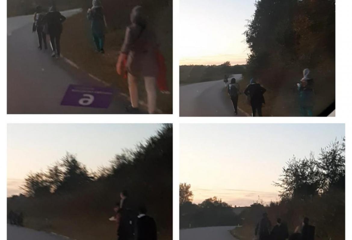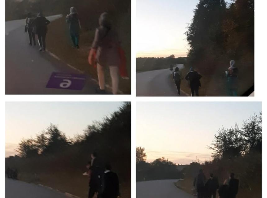 Skupina migranata i majka sa djecom idu pješice iz pravca Turije prema Gati.