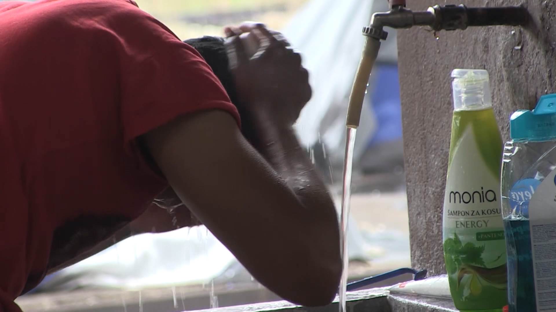 Pranje kose pod česmom, hladnom vodom. Potom oblačenje. Sve na minusu. Na željezničkoj stanici u Tuzli koja je djelimično pokrivena, postavljeni su nedavno šatori koji nisu za ove uslove. Izuzetno su tanki, ali to je jedini način da se migranti sakriju od hladnih noći i spavaju u koliko-toliko zatvorenom prostoru.