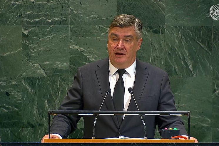 U uvodnom dijelu obraćanja je podsjetio koliko je UN značio za sticanje nezavisnosti Hrvatske, a onda se osvrnuo na ratove širom svijeta.