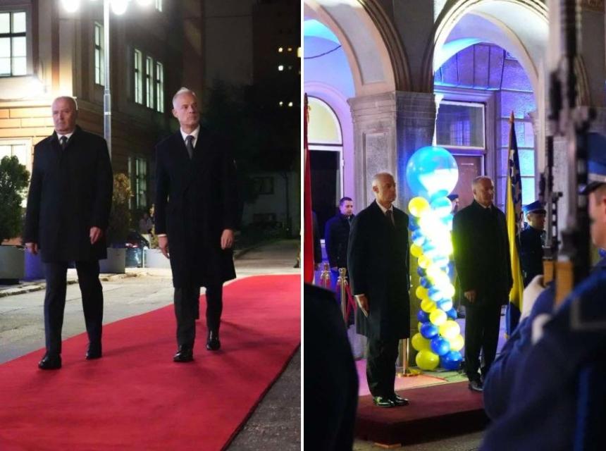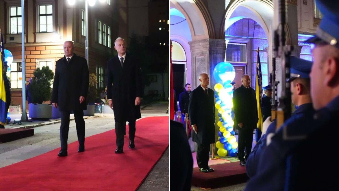 Posjeta je započeta ispred Ministarstva odbrane BiH, gdje je bila postrojena Počasna jedinica Oružanih snaga BiH.