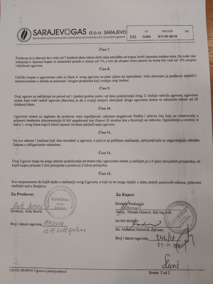 - Nakon toga će se u GIS softveru nacrtati ponovo porodična firma „Luminos'' d.o.o., koja bi po planu isporučila novu LED rasvjetu. Samo sada, umjesto u „Sarajevogasu“, direktno Kantonu Sarajevo preko Ministarstva komunalne privrede i infrastrukture, i to po planiranim vrijednostima za naredne dvije godine više od 50 miliona KM - navodi se u prijavi.