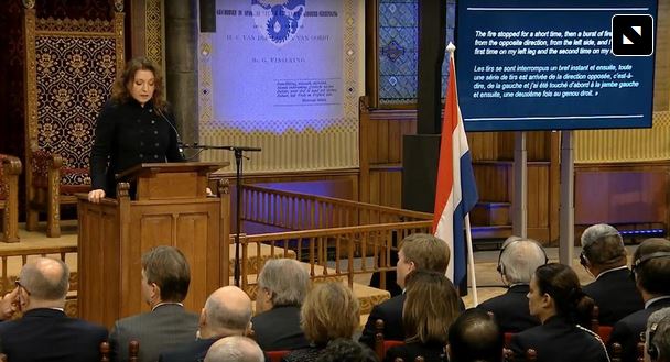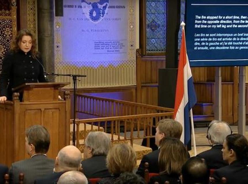 Govoreći pred sam kraj ceremonije (1:33:25 na videu) pročitala je tragična svjedočenja Minke Čehajića iz Prijedora, Grozdane Ćećez iz Donjeg Sela kod Konjica, Hazira Isufa Beriše s Kosova i Emila Čakalića iz Vukovara.