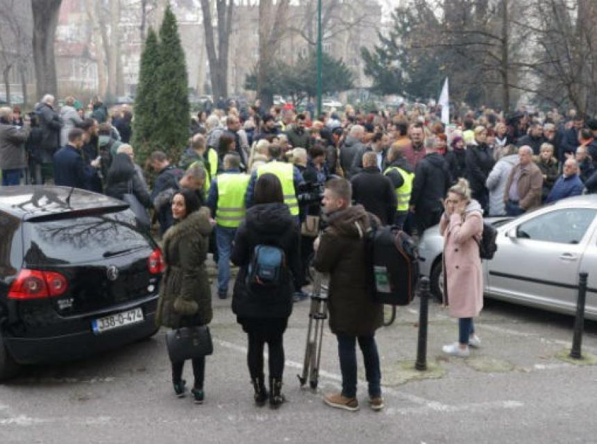 Predsjednik Sindikata prim. dr. Edo Selimić kazao je novinarima kako su danas došli da bi iskazali nezadovoljstvo, dostojanstveno sat vremena.