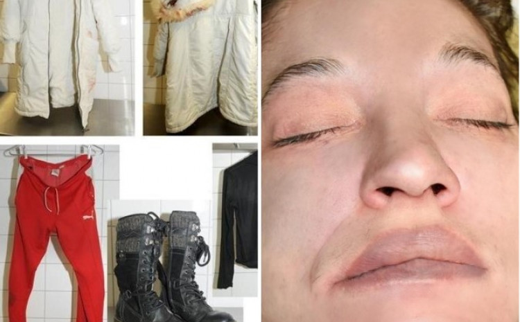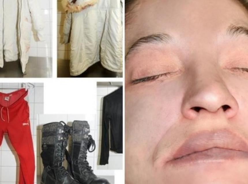 U trenutku pronalaska na mjestu zločina misteriozna žena je nosila bijelu zimsku jaknu, crvenu trenirku marke „Puma“. Dukserica ima bijelu traku. Crna košulja je dugih rukava i crne ženske čizme s vezicama preko gležnja.