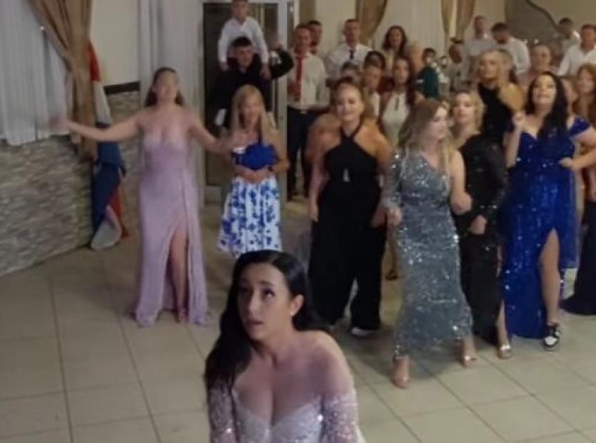 Snimak je zabilježen u momentu kada mlada baca buket, a iza nje se nakon toga počela odvijati prava "drama".