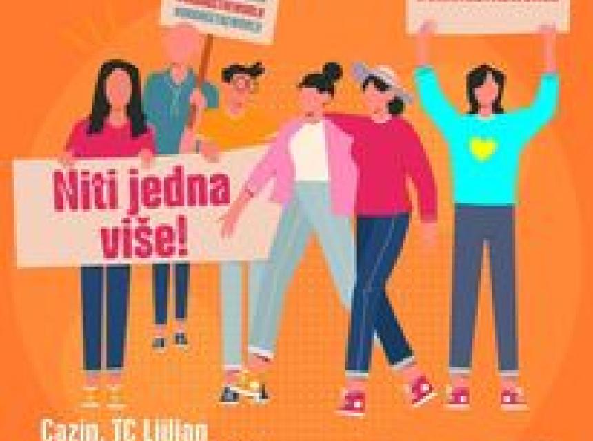 Na Trgu, odnosno platou ispred Centra za kulturu i turizam, de nakon šetnje biti održan performans „Danas sam dobila cvijede“ u izvedbi cazinskih srednjoškolaca, te obradanje Multisektorskog tima za prevenciju nasilja Grada Cazina. Cilj ove aktivnosti je poslati jasnu poruku da za nasilje nema tolerancije, informisati stanovništvo o vrstama nasilja, načinima reagiranja i (samo)zaštite, te na koji način dobiti pomod i podršku.