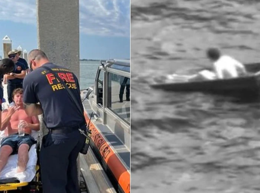 Američka obalska straža saopštila je da su ga nakon 35 sati spasili kad ga je ekipa za pretragu u avionu uočila kako sjedi na svom malom ribarskom čamcu s ravnim dnom koji je bio potopljen.