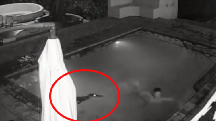 Na snimku se mogu vidjeti mladić i djevojka kako bezbrižno uživaju u bazenu, dok im se prikrada gmaz dug dva metra.
