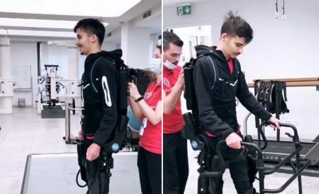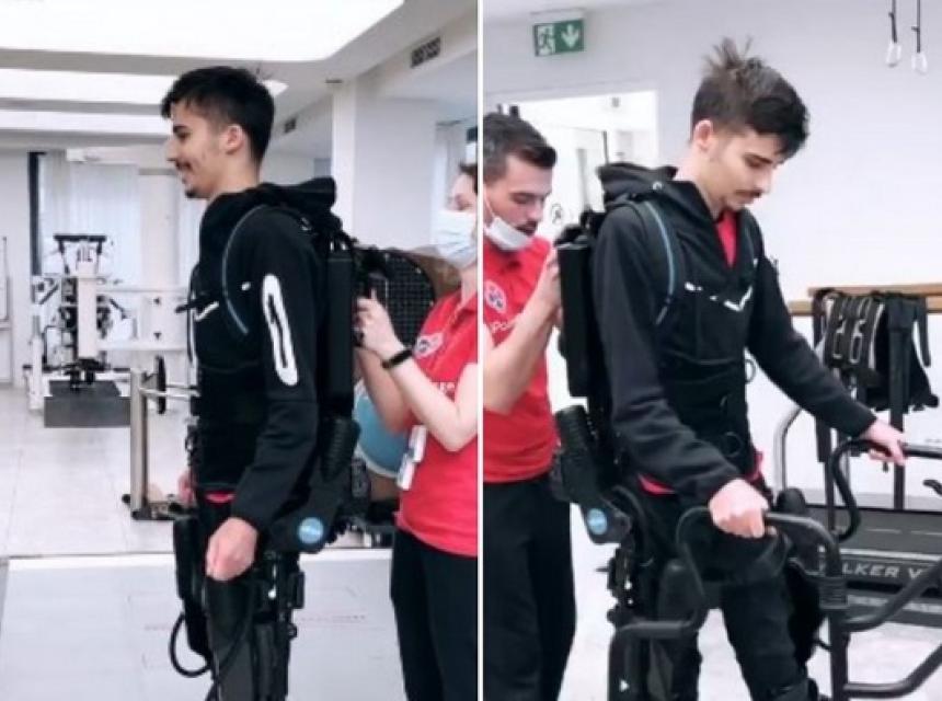 Porodica je u Facebook grupi „I ja sam Azur“ podijelila snimak na kojem se vidi kako je Azur, uz pomoć robota, napravio i prve korake.
