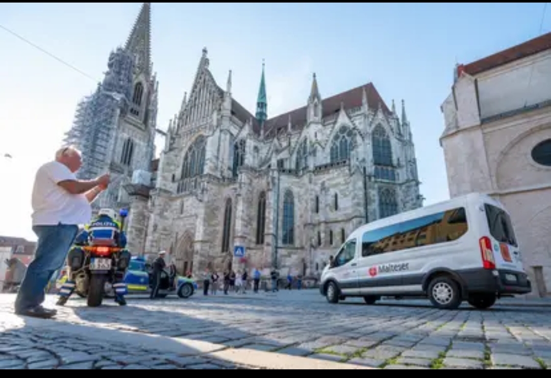 Skele su često postavljene oko katedrale u Regensburgu, gradu u Bavarskoj, i ljudi se svake godine na njih penju, rekao je glasnogovornik policije. Trenutno se obnavljaju tornjevi katedrale koji su visoki 105 metara.