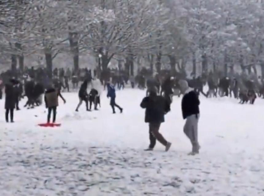Policija Zapadnog Yorkshirea je kaznila 20-godišnjeg i 23-godišnjeg mladića zbog toga što su 14. januara organizovali masovno grudvanje u parku. Za organizaciju događaja korištene su društvene mreže, a na njima su objavljeni i snimci događaja.