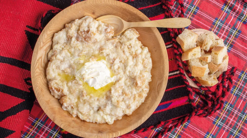 Stavimo vodu da provri, dodamo so, mast i uz brzo miješanje (da se ne bi stvorile grudvice) dodajemo kukuruzno brašno. Dodati kajmak ili sir i miješati.