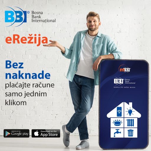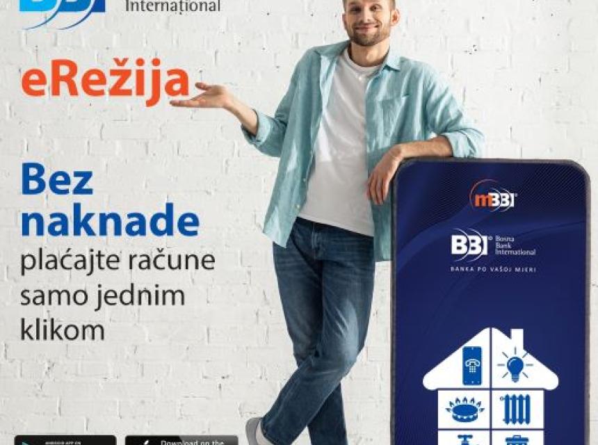 Korisnici Internet i mobilnog bankarstva BBI banke putem besplatne usluge 𝗲𝗥𝗲𝘇̌𝗶𝗷𝗮 imaju mogućnost plaćanja režijskih računa bez naknade i to samo jednim klikom. Ova pogodnost odnosi se na plaćanje svih režijskih računa na području Kantona Sarajevo, kao i za račune BH Telecoma i JP Elektroprivrede BiH na području cijele Bosne i Hercegovine, kao i za izmirenje obaveza prema JKP Visoko. Putem usluge eRežija građani mogu izmiriti i svoje obaveze prema agenciji Securitas ili uplatiti članarinu za BIHAMK.