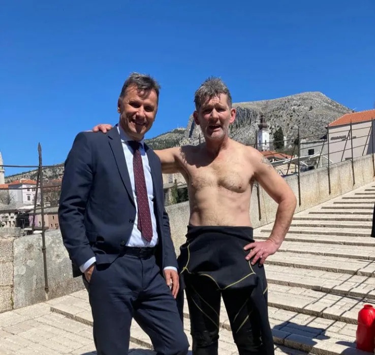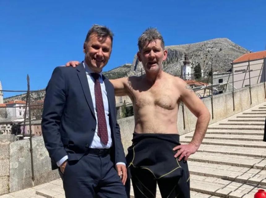 Ovu priliku Novalić je iskoristio da posjeti i staru jezgru Mostara. Prilikom boravka na Starom mostu mostarski skakati su za Novalića izveli i skok.