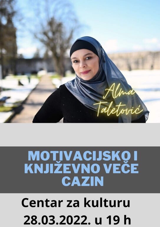 Alma Taletović je profesorica, spisateljica, influenserica, motivacijska govornica, certificirani NLP Practitioner, NLP Master i NLP life coach.