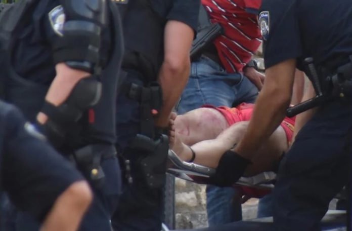Oko 19 sati muškarac je uhapšen. Prilikom hapšenja povrijedio se hladnim oružjem te je prevezen u bolnicu.