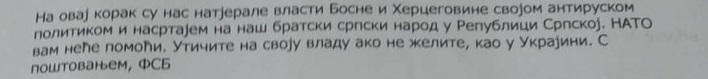 Poruka je pisana ćiriličnim pismom