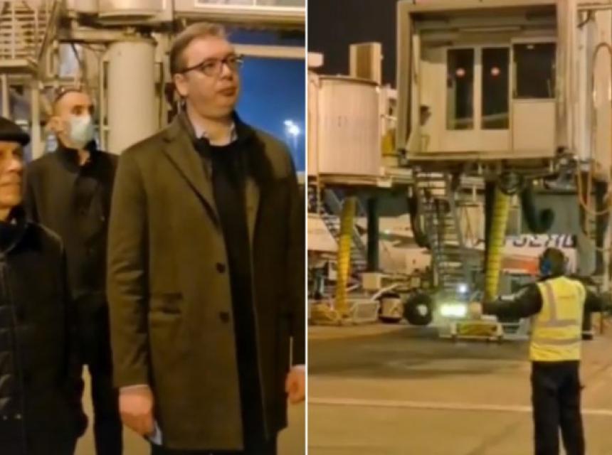 Predsjednik Srbije Aleksandar Vučić dočekao je večeras na aerodromu "Nikola Tesla" novi kontingent sa ruskim vakcinama "Sputnjik V".