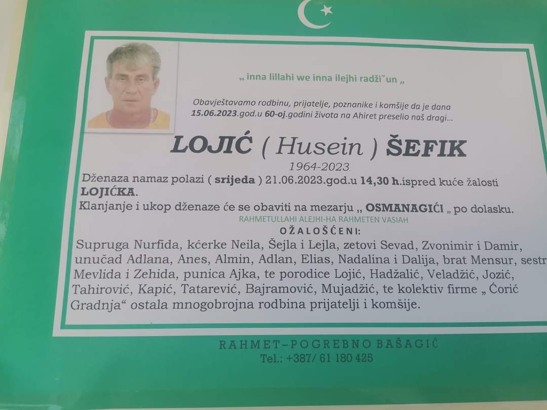 Dana 15.06.2023. g. u 60-oj godini života preselio je na Ahiret Lojić (Husein) Šefik.