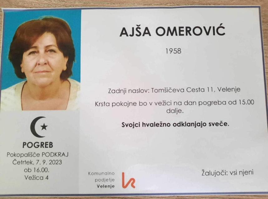 Tužnim srcem i bolom u duši javljamo rodbini, prijateljima i komšijama da je naša draga Ajša Omerović u 65-oj godini života, preselila na Ahiret.