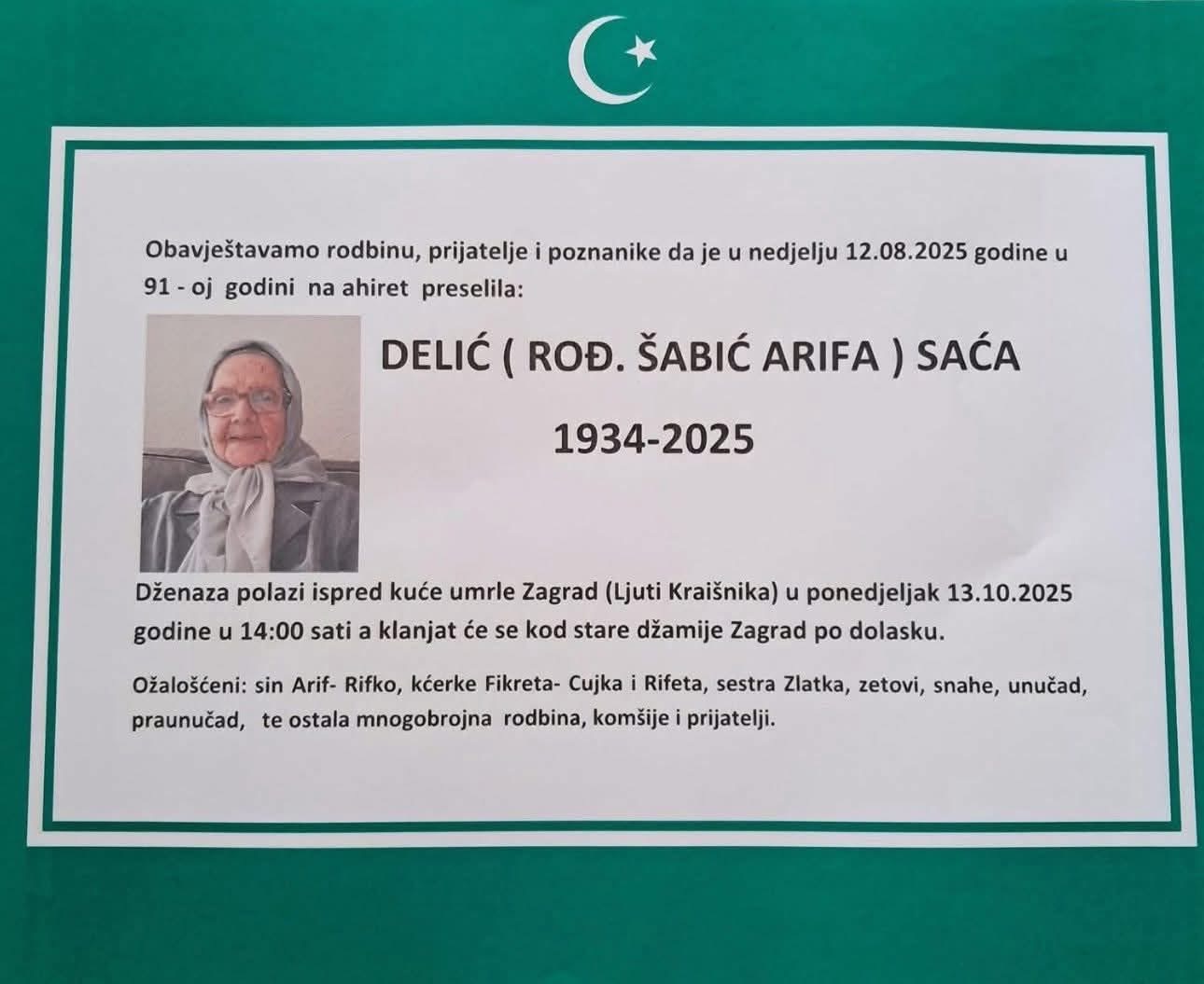 DELIĆ (ROĐ. ŠABIĆ ARIFA) SAĆA