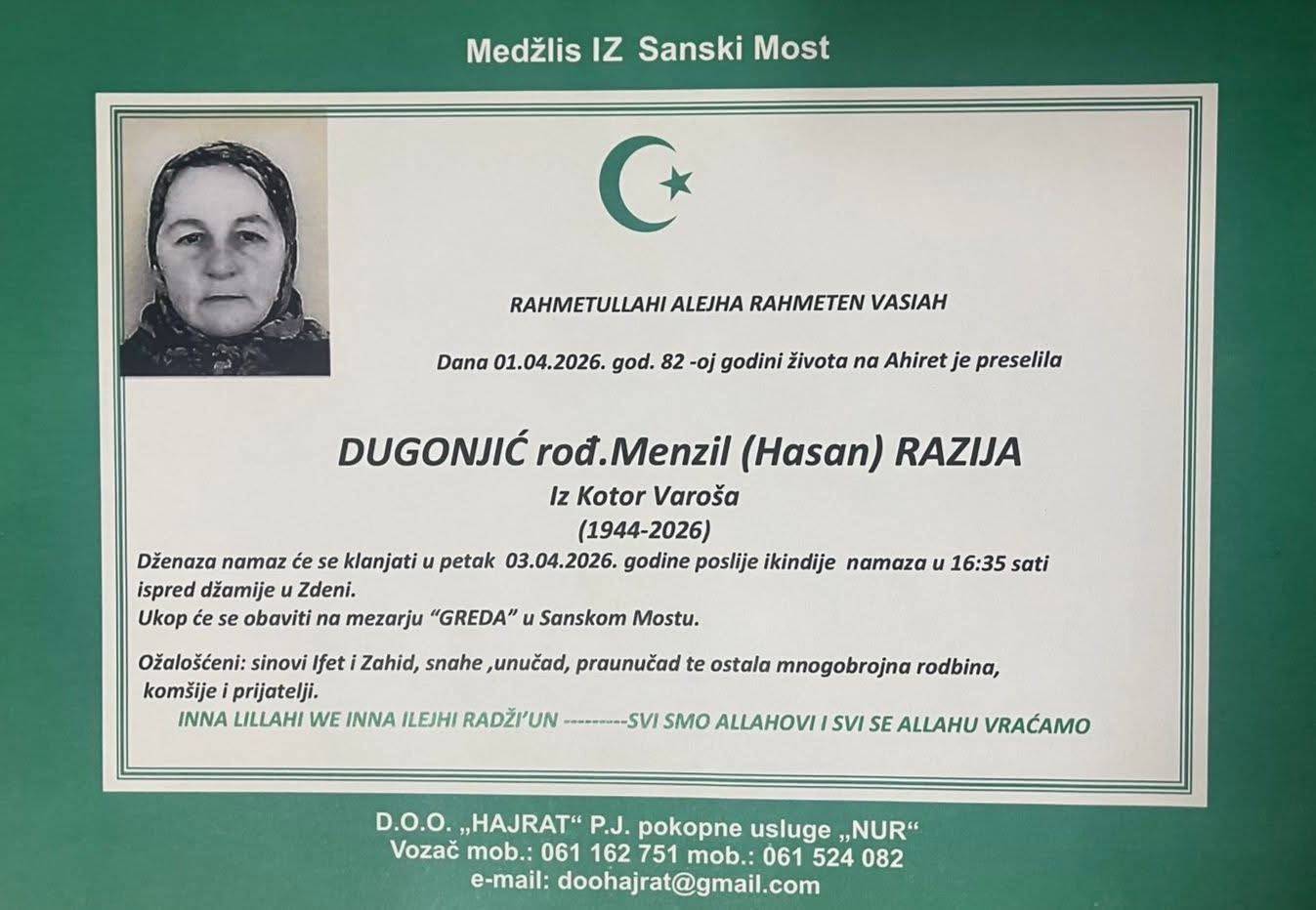 DUGONJIĆ rođ. Menzil (Hasan) RAZIJA