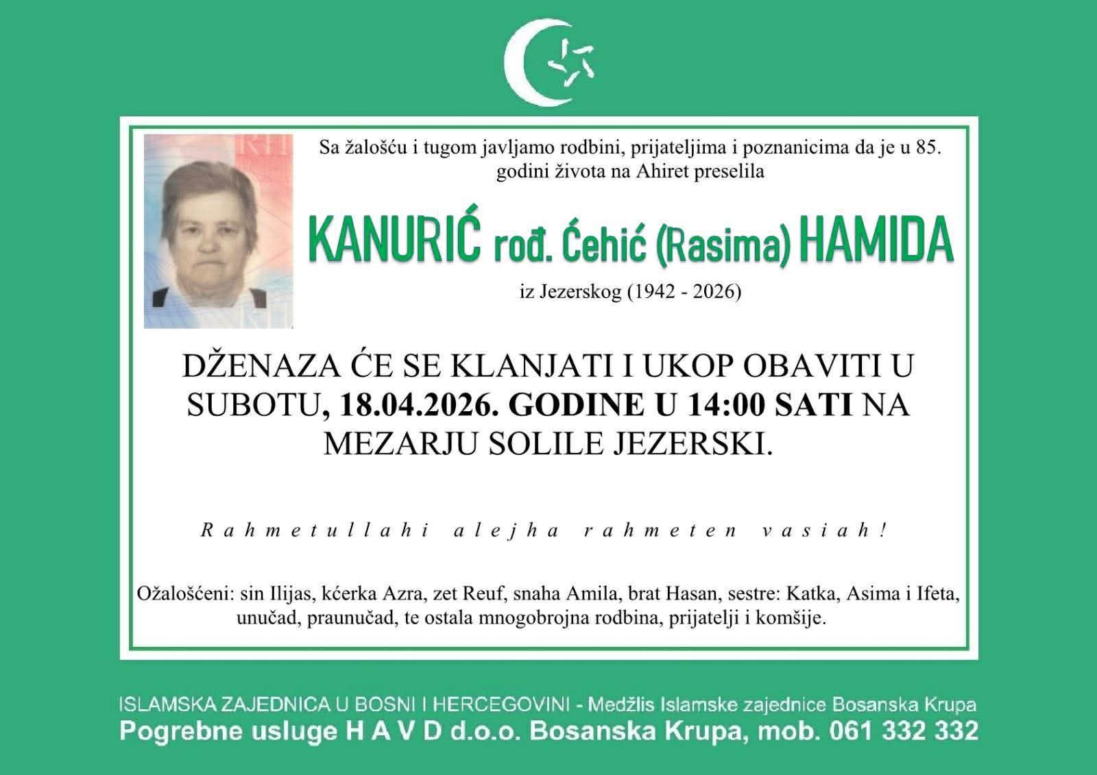 KANURIĆ rođ. Ćehić (Rasima) HAMIDA