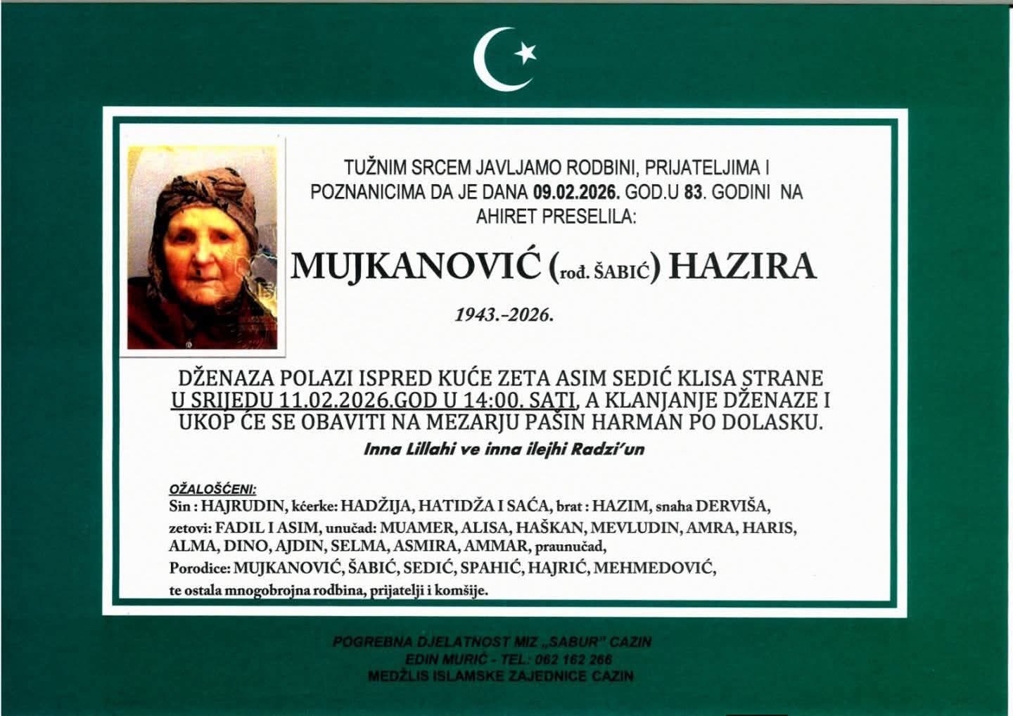 Mujkanović (rođ. Šabić) Hazira