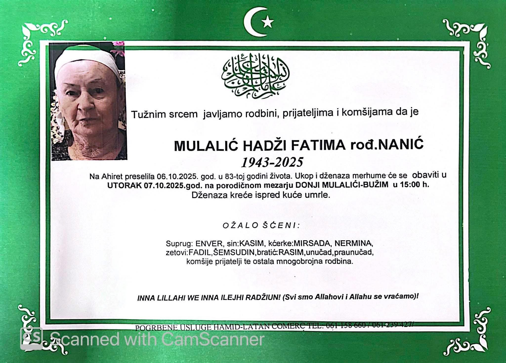 MULALIĆ HADŽI FATIMA rođ. NANIĆ