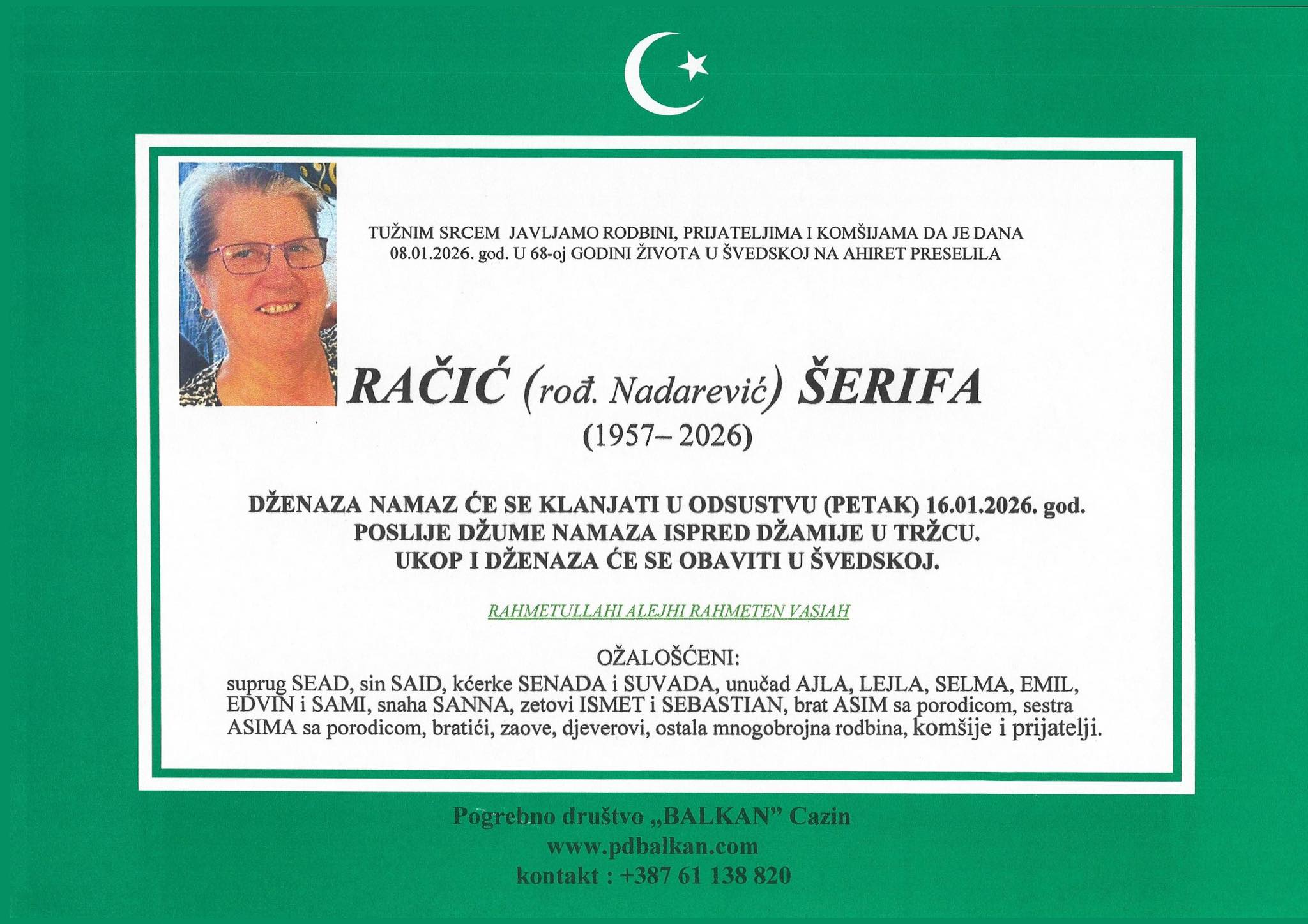 RAČIĆ (rođ. Nadarević) ŠERIFA