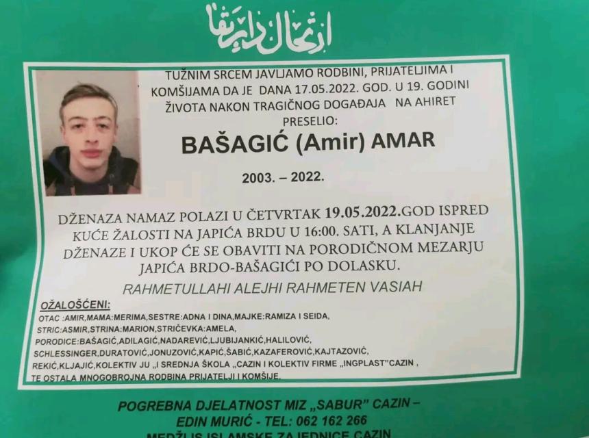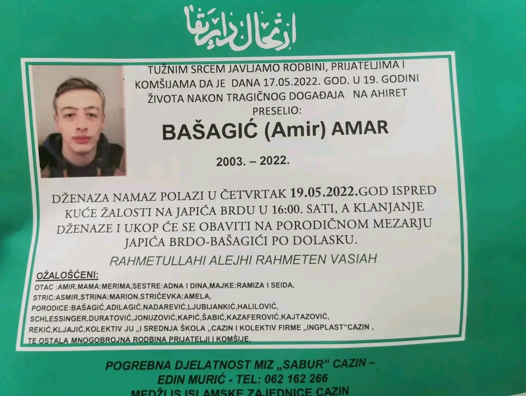 Tužnog srca i s bolom u duši obavještavamo rodbinu, komšije i prijatelje da je naš dragi Bašagić (Amir) Amar u 19. godini života preselio na Ahiret.