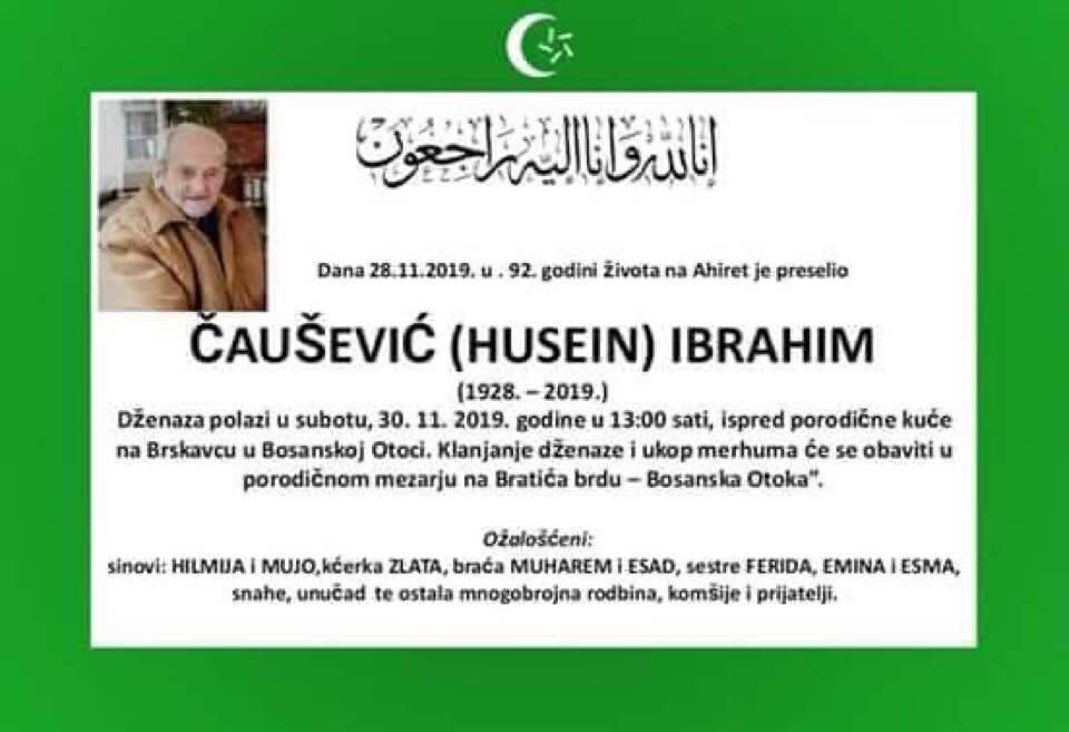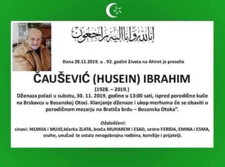 Dana 28.11.2019. u 92. godini života na na Ahiret je preselio Čaušević (Husein) Ibrahim.