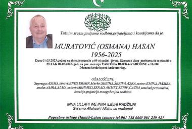 Dženaza će se obaviti u srijedu 29.01.2020. godine na porodičnom mezarju ČORDIĆI u blizini kuće u 14:00 sati.