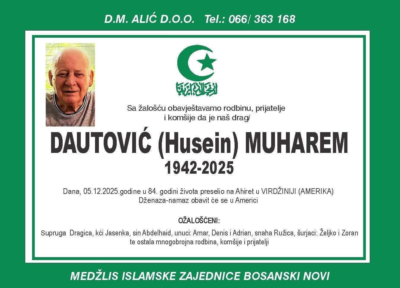 Sa žalošću obavještavamo rodbinu, prijatelje i komšije da je naš dragi