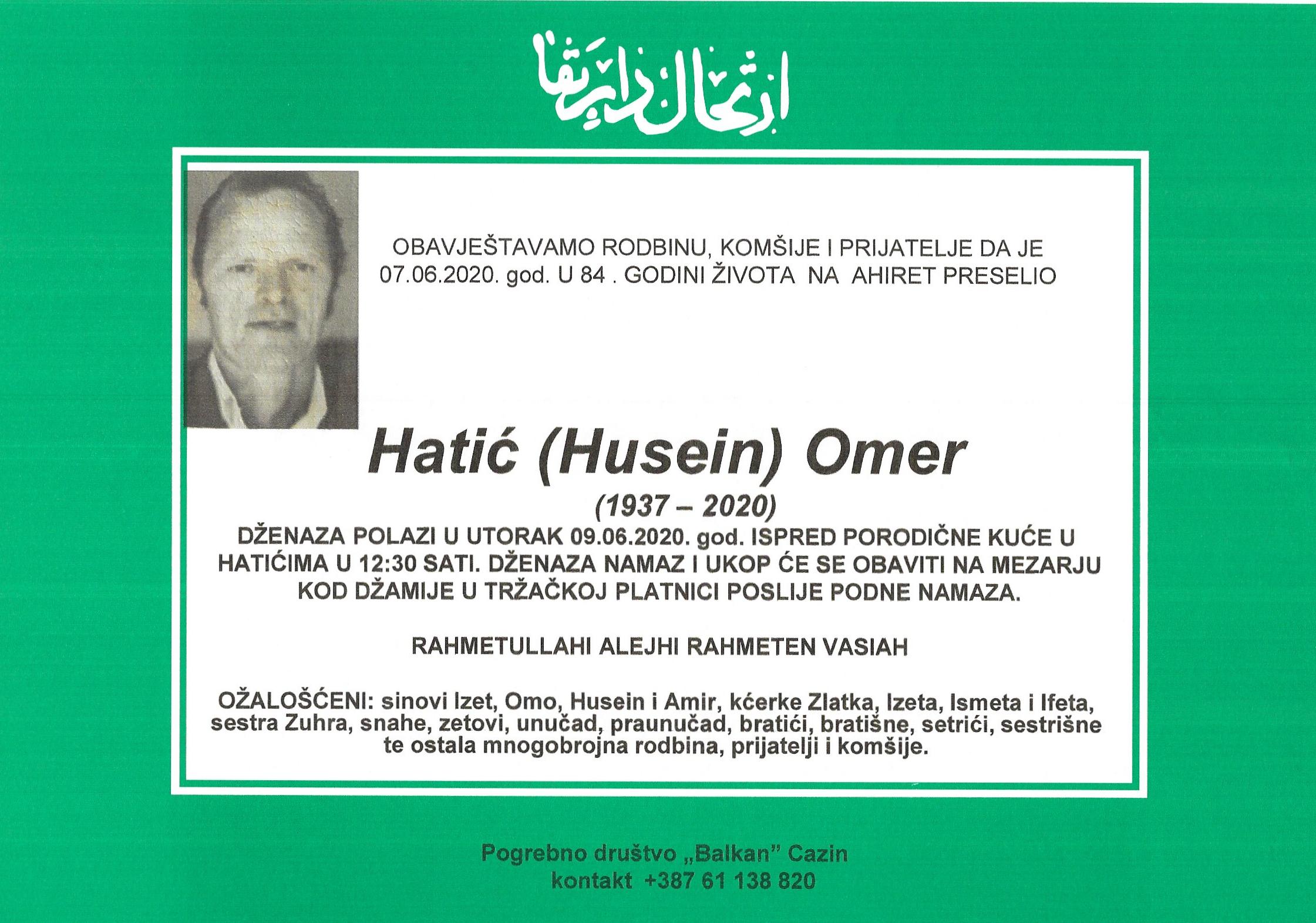 Teškim srcem i bolom u duši javljamo da je naš dragi i nikad prežaljeni Hatić (Husein) Omer dana 07.06.2020.godine u 84-toj godini života preselio na Ahiret.