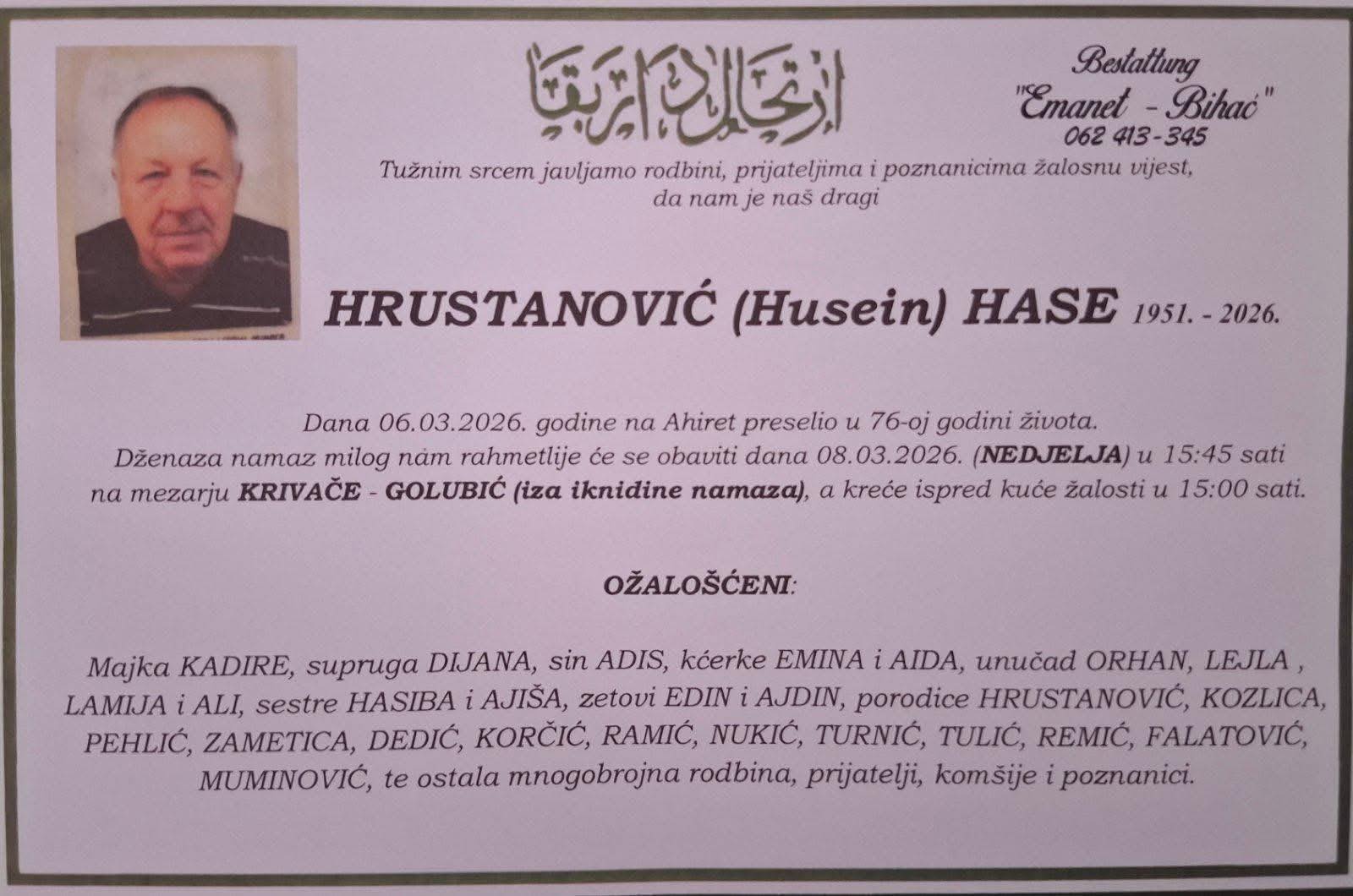HRUSTANOVIĆ (Husein) HASE 1951.-2026.