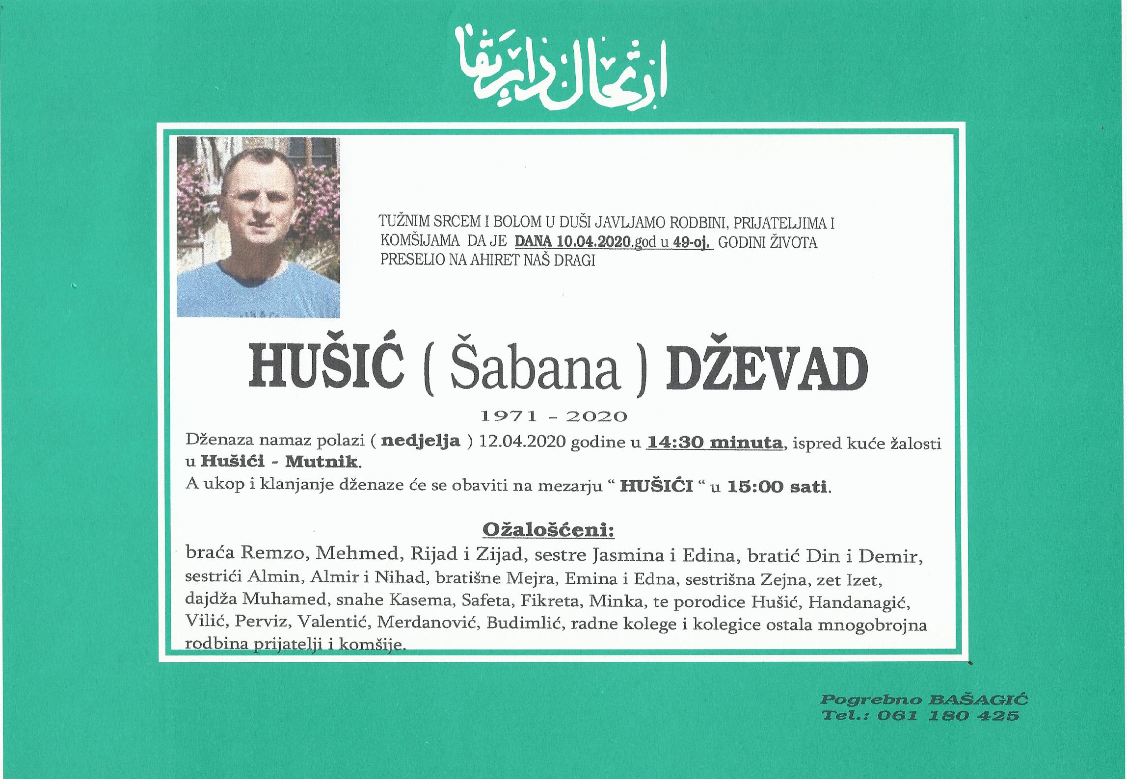 Teškim srcem i bolom u duši javljamo da je naš dragi i nikad prežaljeni Hušić (Šabana) Dževad dana 10.04.2020.godine u 49-toj godini života preselio na Ahiret.