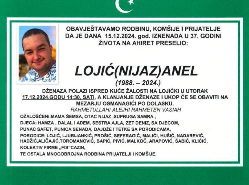 Dana 15.12.2024. godine, iznenada je u 37. godini života preminuo Anel (Nijaz) Lojić.