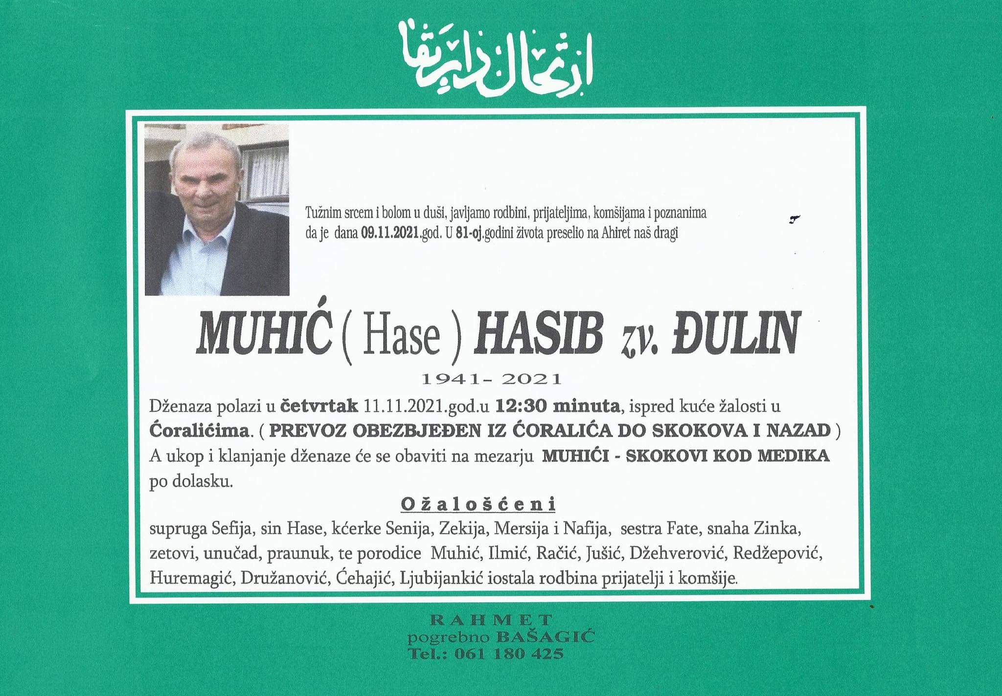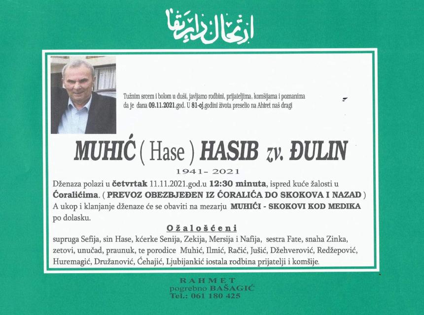 Tužnog srca i s bolom u duši obavještavamo rodbinu, komšije i prijatelje da je naš dragi Muhić (Hase) Hasib zv. Đulin dana 9.11.2021. u 81. godini života preselio na ahiret.