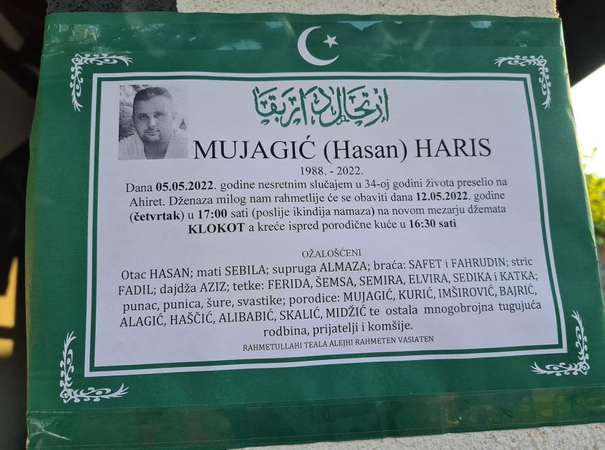 Tužnog srca i s bolom u duši obavještavamo rodbinu, komšije i prijatelje da je naš dragi Mujagić (Hasan) Haris u 34. godini života preselio na Ahiret.