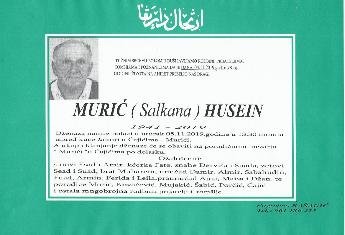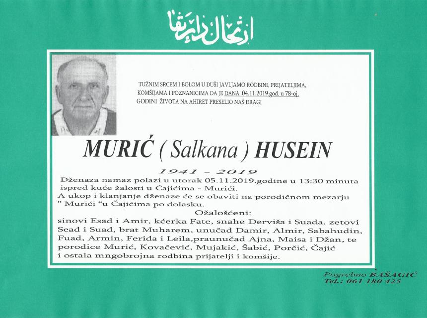 Sa žalošću, bolom i tugom javljamo rodbini, prijateljima i poznanicima da je naš dragi Murić (Salkana) Husein, 04.11.2019.g. preselio na Ahiret u 78. g. života.