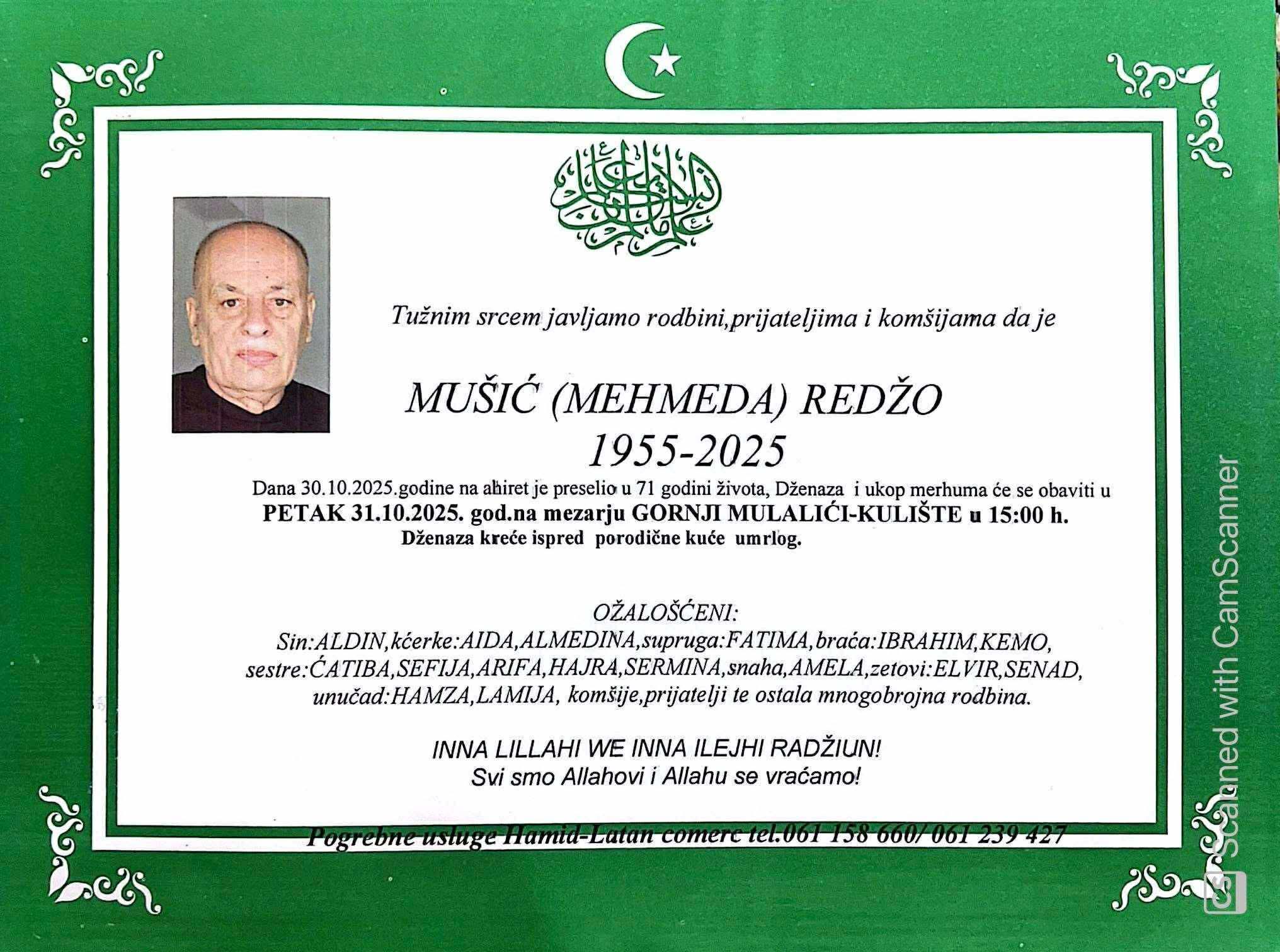 Dana 30.10.2025. godine na ahiret je preselio u 71. godini života. Dženaza i ukop merhuma će se obaviti u